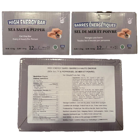 BDH High Energy Bar Sea Salt & Pepper Flavor 6600 Calorie | 120g*12bags MRE Survival Emergency Food Ration Long shelf-life Biscuits for Outdoor Activities, Crisis Disaster Preparation, Compact Packaging