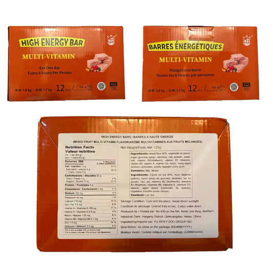 BDH High Energy Bar Mixed Fruit Flavor 7400 Calories | 125g*12bags MRE Survival High Energy Emergency Food Ration Compressed Biscuits Long shelf-life